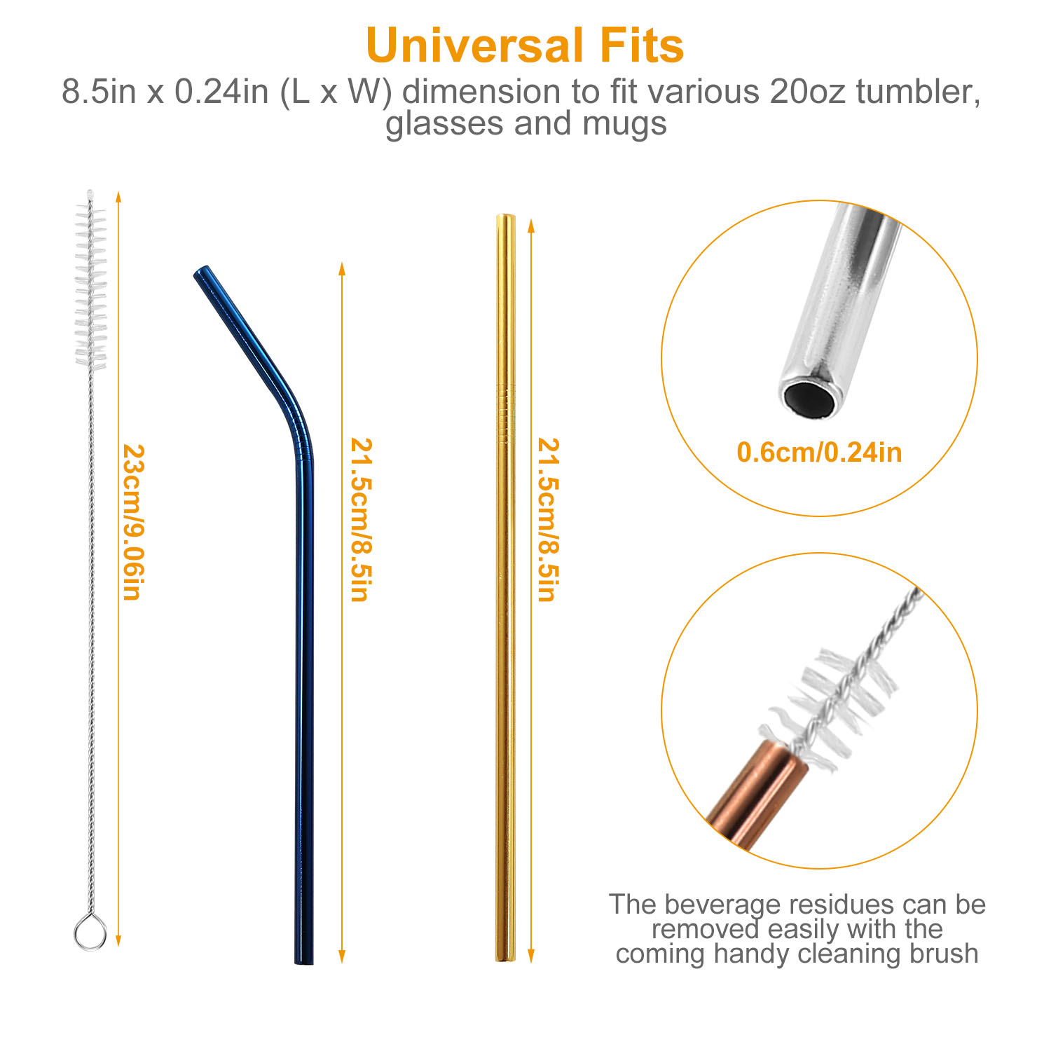 10Pcs 8.5in Stainless Steel Drinking Straws Reusable Metal Drinking Straws for 20oz Tumbler