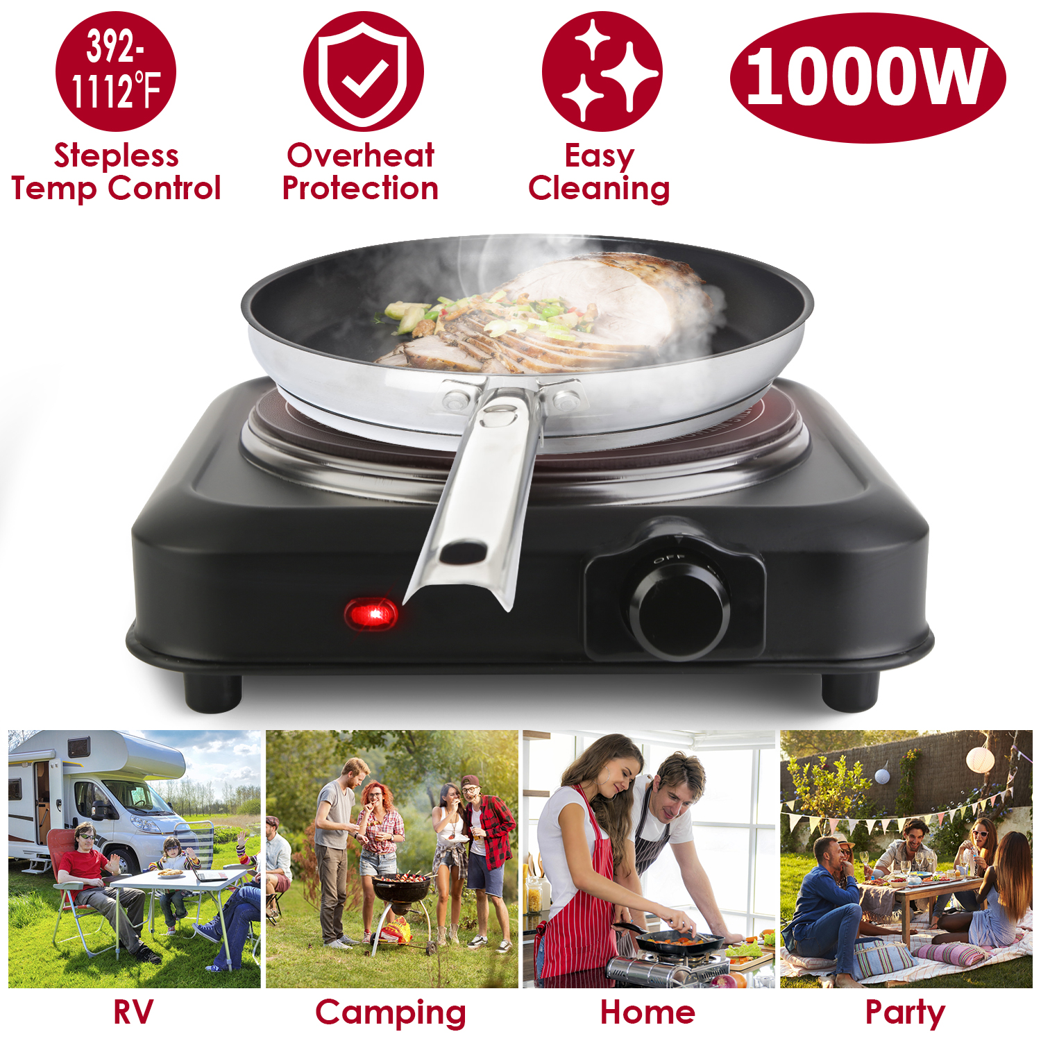 Home > 1000W Electric Infrared Single Burner Portable Heating Hot Plate Stove Countertop RV Hotplate with 7.5” Glass Cooktop Stepless Temperature Adjustments