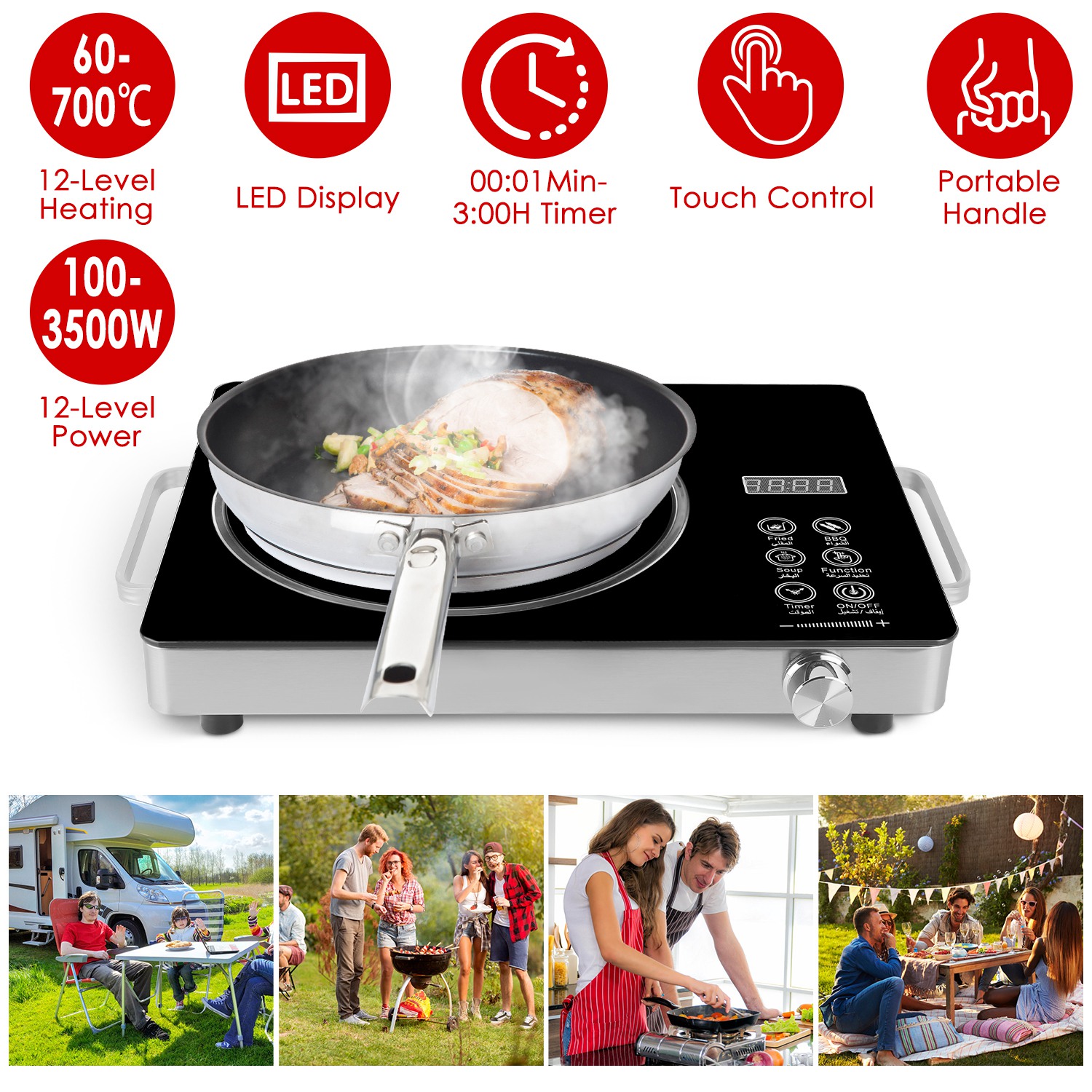 Home > 3500W Electric Single Ceramic Stove Electric Cooktop Hot Plate Infrared Countertop Burner with 12 Power & Temperature Levels 0-3H Timer Portable Handl