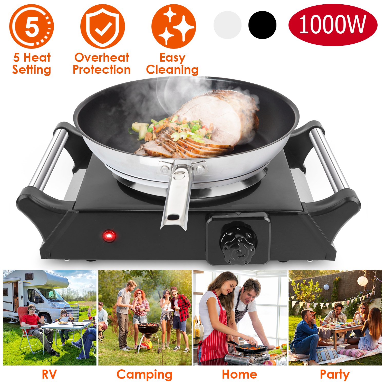 Home > 1000W Electric Single Burner Portable Heating Hot Plate Stove Countertop RV Hotplate with 5 Temperature Adjustments Portable Handles