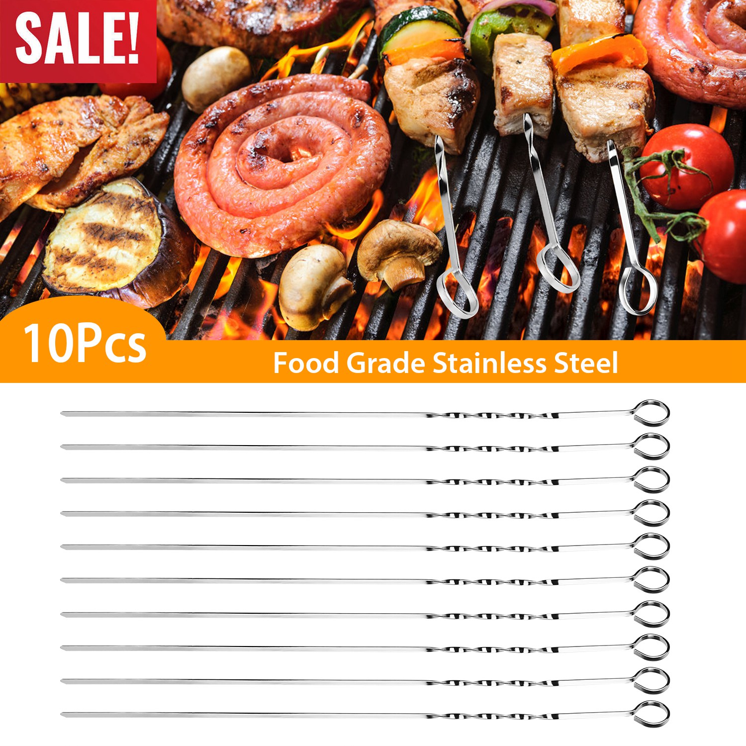 Home > 10Pcs BBQ Skewers 16" inch Kabob Skewers V-Shape Stainless Steel Shish Kebab Sticks Reusable Barbecue Skewers Set BBQ Grill Skewers for Meat Shrimp Ch