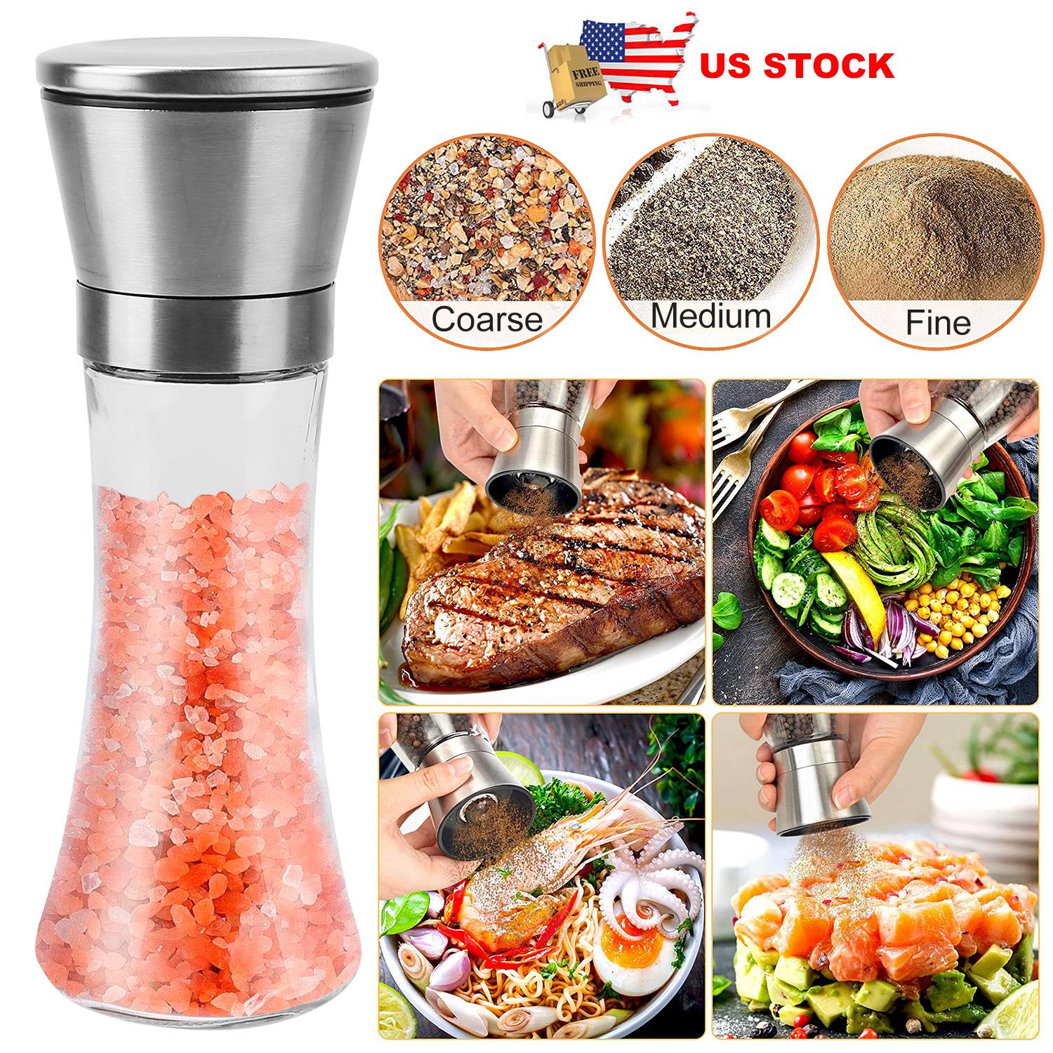 Stainless Steel Salt Pepper Grinder Tall Glass Sea Salt & Pepper Mill Shaker w/ Adjustable Coarseness