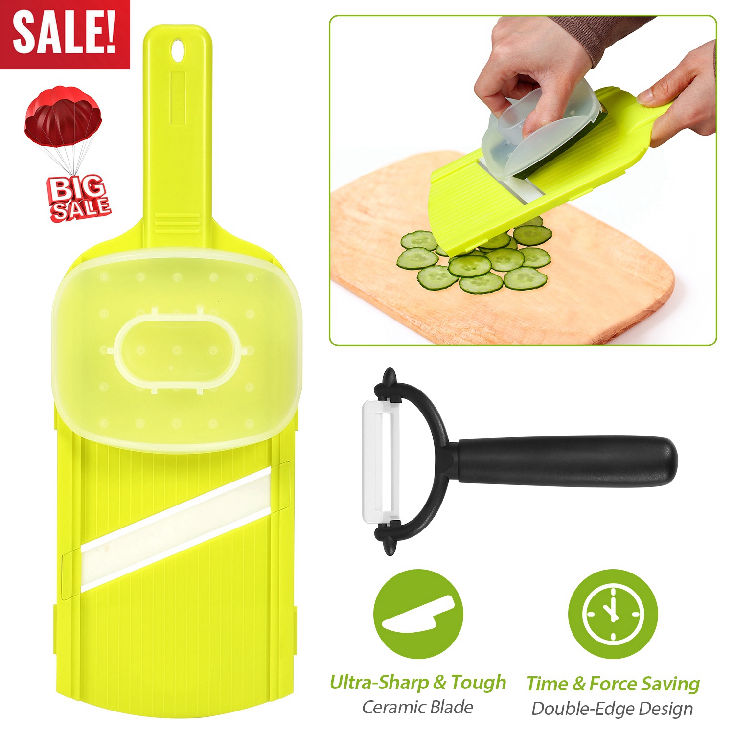 Mandolin Slicer Double-edged Ceramic Vegetable Slicer w/ Bonus Hand Guard Ceramic Peeler