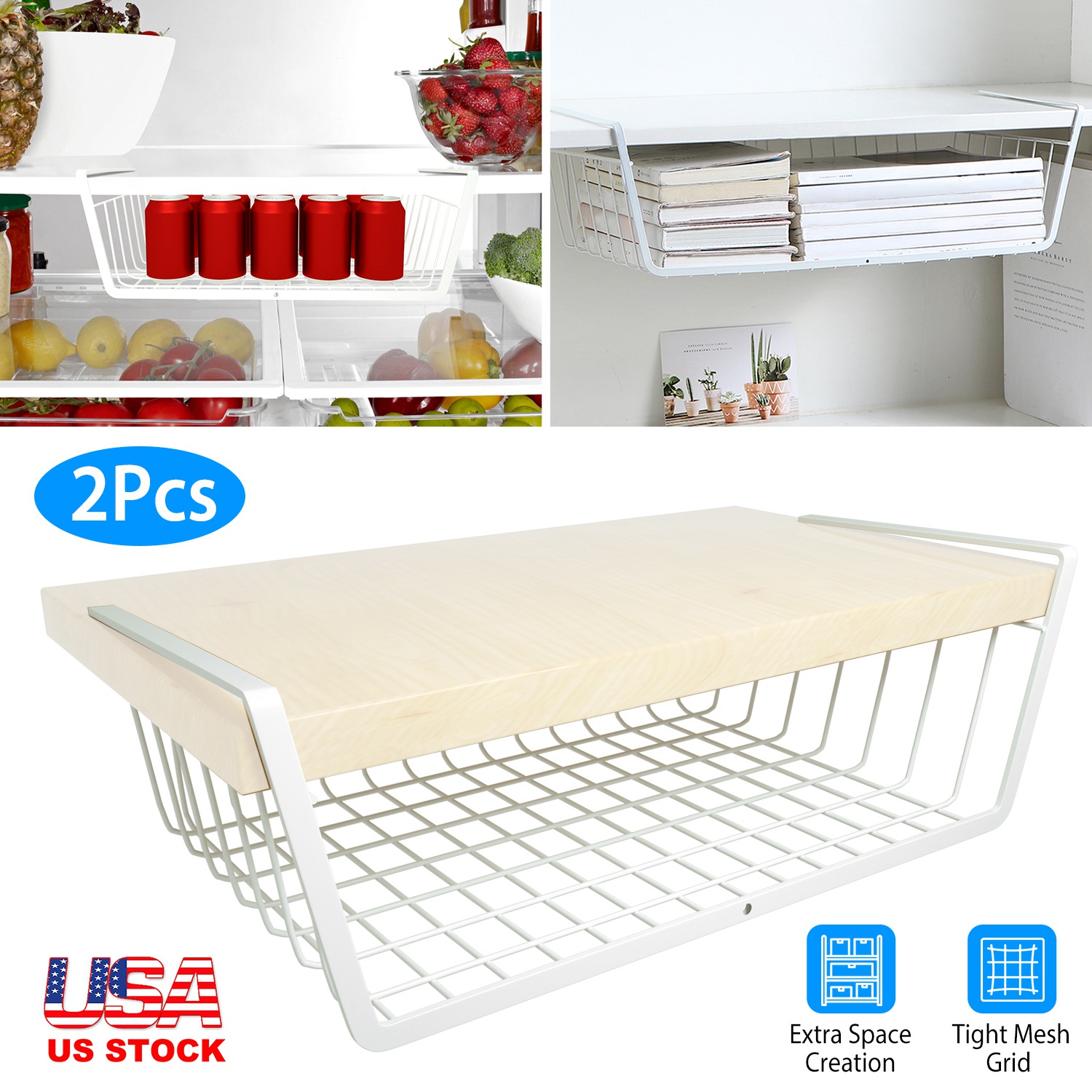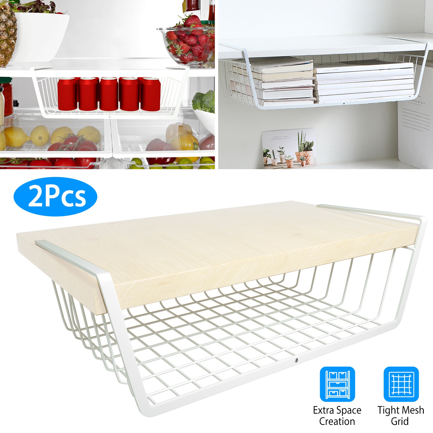 2Pcs Hanging Under Shelf Storage Basket Vertical Wire Storage Rack Kitchen Cabinet Organizer For Food Storage Dish Towel Kitchen Pantry